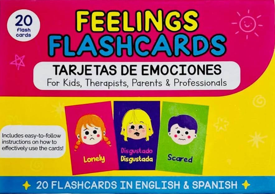 Build emotional intelligence and bilingual skills with our durable English/Spanish therapy flashcards. Featuring 20 double-sided cards, they’re perfect for kids, teens, and adults—ideal for classrooms, therapy, or home learning. A fun, engaging way to connect emotions with language.