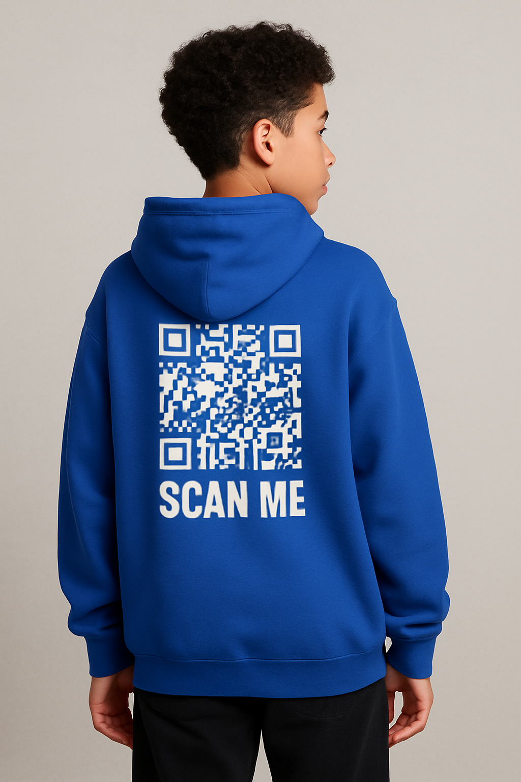 Bright and bold, the Cobalt Energy Hoodie is all about confidence. A crisp white QR code pops against deep cobalt, creating a sporty, standout streetwear vibe.